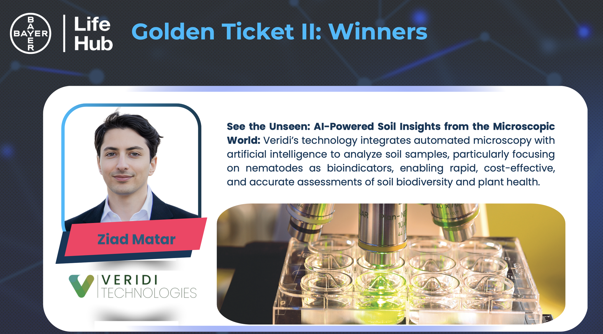 We are grateful to Bayer Crop Science and the Innovation Ecosystem for this opportunity, and to our team for their dedication and innovation. Together, we are helping lead the way toward a future where agriculture supports both productivity and the health of the planet.